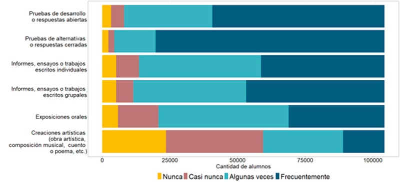El nivel de familiaridad de las y los estudiantes con los distintos formatos de evaluación tiene un gran impacto en cómo se enfrentan a ellas en este nuevo contexto universitario, lo que les permite demostrar sus aprendizajes de manera adecuada. Las instituciones podrían usar esta información para adecuar el tipo de evaluaciones que implementan, por ejemplo, introduciendo de forma gradual aquellas que son menos frecuentes, y así apoyar el proceso de transición que experimenta el estudiantado.